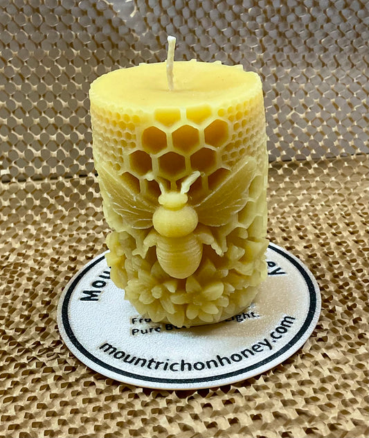 Beeswax Pillar Candle – Honeycomb Design