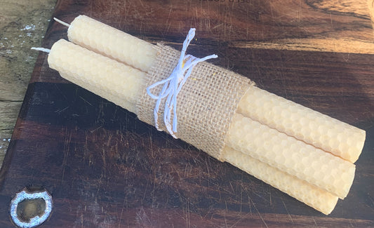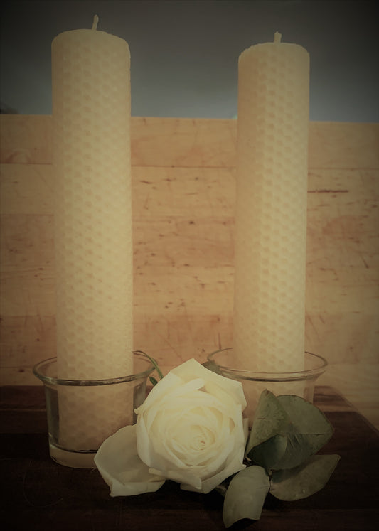 Natural Beeswax Hand Rolled Pillar - Dinner Candles **20cm**