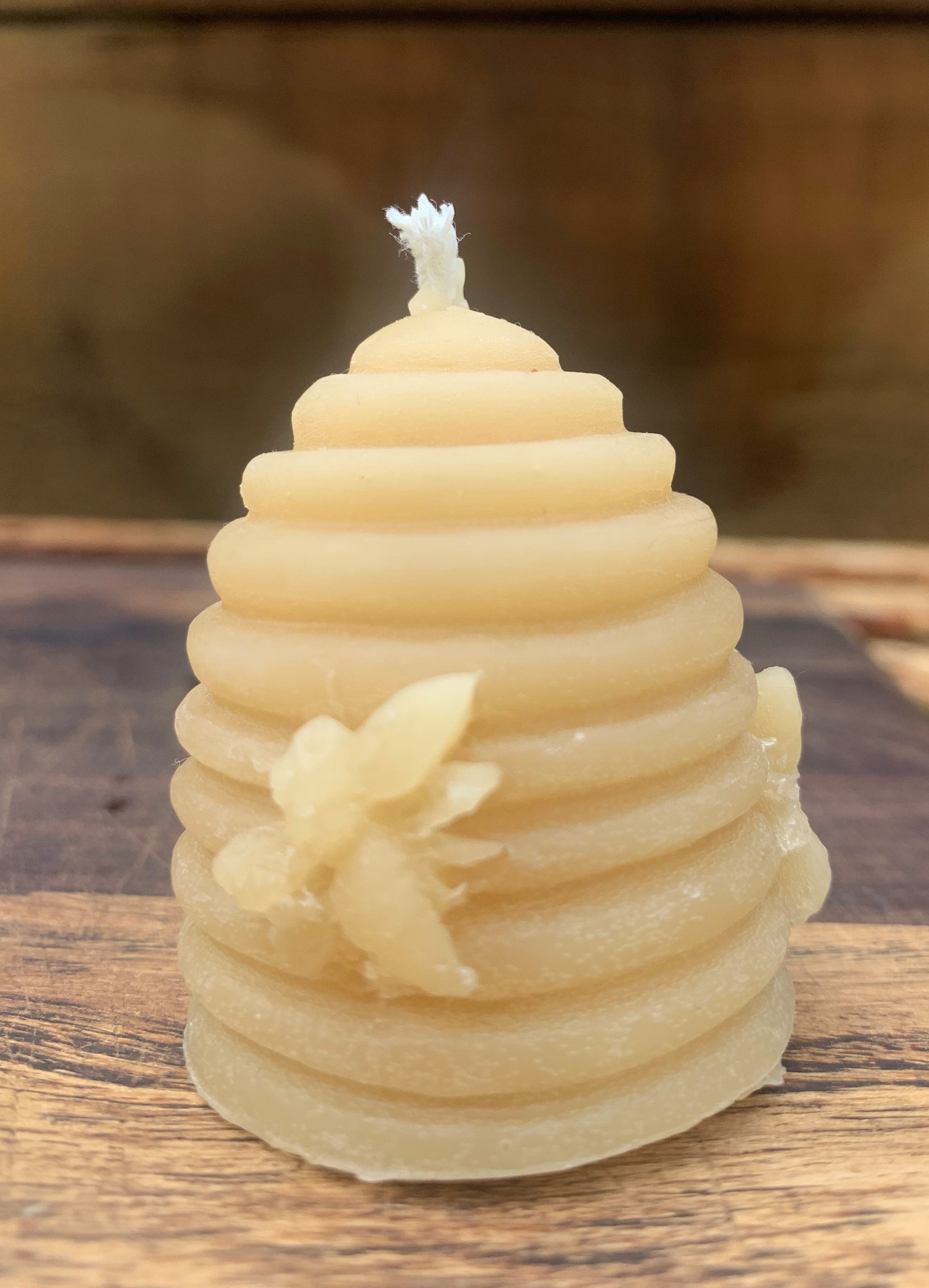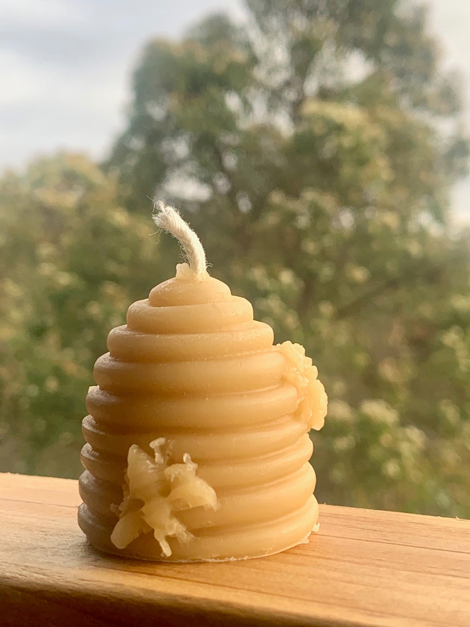 Inspired by the classic skep hive, this petite beeswax candle is a tribute to old-world beekeeping. Each candle is handcrafted using pure Western Australian beeswax from our own hives, offering a soft honey scent and warm, golden glow. Perfect as a rustic gift, table accent, or wedding favour.