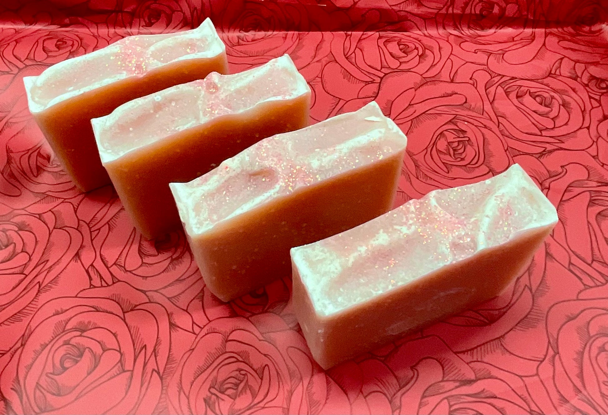 Indulge in a luxurious shower experience with our Vanilla Rose Soap Bar, a gentle blend of creamy vanilla and soft rose petals. Handmade using plant-based oils and the cold process method, this bar delivers a rich lather while nourishing your skin with natural goodness. Its romantic scent and elegant glittering appearance make it a perfect gift, or a daily indulgence.